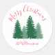 Este belo adesivo de presente de Natal apresenta pinheiros verdes e uma tipografia elegante e festiva vermelha. Adicione seu Feliz Natal no topo e seu nome / sobrenome personalizado na parte inferior. Você pode personalizá-lo facilmente através do botão "Personalizar". Ficará bonito em presentes para sua família e amigos!