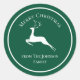 Uma rena branca elegante salta por baixo do Feliz Natal. Personalize estas etiquetas de presentes verdes de Natal que seu nome familiar está embaixo para belos presentes personalizados.