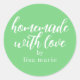Adesivo personalizado rústico e moderno feito à mão com amor apresenta caligrafia estilosa e manuscrita em um fundo verde de verão. Perfeito para todos os seus presentes feitos à mão! Basta adicionar seu nome ao rótulo. Exclusivamente projetado para você pelo Happy Dolphin Studio!