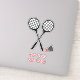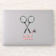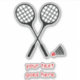 Presentes de Badminton, raquete e véu. Mostra um pictograma preto minimalista de dois raquetes de badminton e um vaivém preto e vermelho.