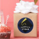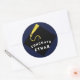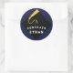 Adesivos criativos de presente de formatura, etiquetas de favor de festa ou selos de envelope com o chapéu de formatura preto com borla dourada em fundo azul marinho. Para personalizar, edite o texto para adicionar o nome da turma de formandos.