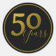 Um adesivo preto clássico e dourado com 50 anos de tipografia.
