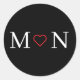 Um adesivo personalizado com Na moda monograma, com iniciais brancas sobre fundo preto. Você pode personalizá-lo agora para adicionar sua inicial e aquelas que você ama.