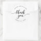 Adesivo versátil de agradecimento com as palavras "Obrigado" em uma escrita cursiva relaxada em preto sobre um fundo branco, perfeito para casamentos ou vários eventos, como chás de panela, chás de bebê, etc.