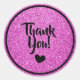 Diga obrigado com estilo com este brilho falso rosa e preto com um ícone de coraçãozinho fofo. O texto é um modelo para que você possa alterá-lo de acordo com a sua necessidade. É ótimo como selo de envelope ou etiqueta de presente para casamentos, chá de bebê, aniversários, aniversários de casamento, formaturas e muito mais. #rosaeprata #brilhofalso #brilhante #brilho #elegante #obrigado #fino #elegante