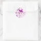 Flores roxas sobre fundo rosa macio fazem alegria com este adesivo dizendo "Primavera feliz". É muito bom anexar-se ao desenvolvimento de um presente