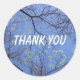 Obrigado, palitos com uma imagem de fundo divertida de um céu azul claro com membros de árvores que estão começando a ficar verdes com novas folhas. Encontre mais produtos correspondentes na coleção de casamento de árvores Primavera.