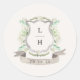 Design de aquarela elegante e rústica pintada à mão por Shelby Allison, com um escudo do tipo crista familiar e monograma rodeados de intrincados detalhes de flores e folhas.