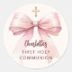 Um creme, fundo bege. Decorado com um grande arco rosa e uma cruz ouro. Personalize e adicione o nome.
