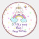 O pastel de ouro bonito e colorido estende os adesivos de primeiro aniversario de uma menina de gato unicórnio. O design apresenta um Gato do Unicórnio bonitinho no arco-íris, estrelas colorido pastel, celestial de brilho de ouro, borda roxa e modelo personalizável, você pode facilmente mudar de texto e celebrar a festa de aniversário ou chá de fraldas de sua garota.