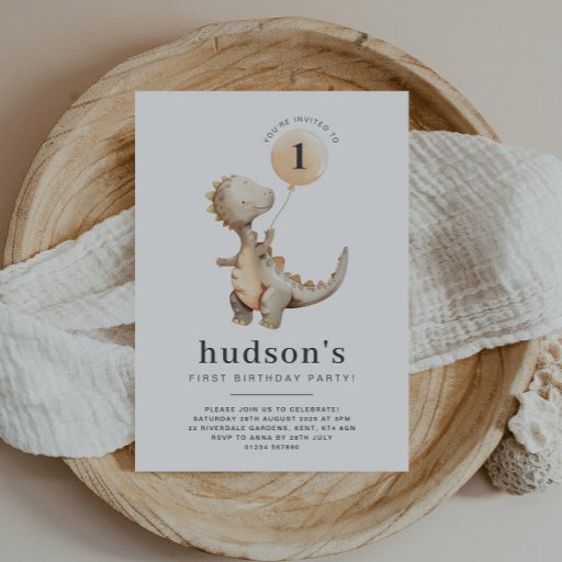 Um dinossauro feliz segurando um balão, perfeito para sua festa temida de dinossauro Rar-some! Você pode alterar o número 1 no balão para qualquer número ou remover o número se preferir. Você também pode editar o texto na parte inferior.