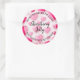 Corações cor-de-rosa-brasil bonitos em adesivos redondos apresentam seu nome e feitos à mão com amor (ou qualquer texto) e qualquer texto no meio em letra chic. Crie esses adesivos para comidas, produtos de beleza, favoritos para festas ou qualquer coisa!