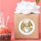 Um único padeiro com tema "Tarot", adesivo de cozinha de pastelaria ou etiqueta de produto, com um esqueleto com bolo e uísque. Um estilo único com um padeiro esqueleto no chapéu de chef. design Dourado com tipo ouro. Esta é a versão maior para etiquetar bolsas e pacotes. Você também pode obtê-lo em um tamanho menor.