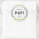 Pronta para o pop chá de fraldas em um adesivo em amarelo, branco e cinza.