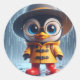 Um adesivo alegre com um determinado pinguim esportivo de uma capa de chuva, chapéu e botas, pronto para conquistar o dia chuvoso.
