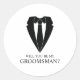 Torne o seu casamento inesquecível - Adicione um toque pessoal com um adesivo de proposta de padrinho de casamento com um traje preto e ilustração de gravata, com uma mensagem de proposta em uma fonte serif clássica.