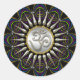 teia geométrica colorida como tecer em um belo fundo com símbolo de Aum (OM) prateado metálico no centro. Ioga de roupa, nova idade, terapias naturais, negócios holísticos e personalidades.