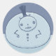Ilustração animada de um boneco de neve gordinho, meio assustador, com um chapéu de cima.