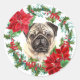 Adesivo Pug Dog Poinsettia Holly Christmas Wreath