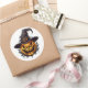 O adesivo redondo é mostrado com uma impressão de abóbora assustadora no Halloween. Personalize este item ou comprar como está.