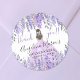 Adicione um toque brilhante e elegante aos seus favoritos para festas, velas, configurações de lugar, fechos de envelopes e muito mais com este charmoso design redondo! Apresentando um tema lilás e lavanda de jardim, ele apresenta delicados caules de lavanda de aquarela em vários tons de roxo, emparelhados com folhas verdes macios. No centro de baixo, uma garota com um vestido roxo cintilante adiciona um toque real e delicioso. "Obrigado" está lindamente escrito em letras roxas, criando um belo equilíbrio de elegância e simplicidade. Perfeito para as comemorações de Quinceañera, este versátil adesivo também pode ser personalizado mudando as cores da fonte ou o fundo para se adequar ao seu estilo.