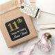 Este design de adesivo de aniversário sofisticado, elegante e luxuoso apresenta um grande número ordinal "11" com um aspecto de imitação/falsa forma dourada, além da mensagem de saudação de aniversário "Feliz 11 de Aniversário", e um nome personalizado em uma letra estilo script. O fundo é preto colorido. Tímulos luxuosos como este podem ser usados ao embrulhar presentes que estão sendo dados a alguém em comemoração de seu aniversário de 11, ou talvez possam ser entregues aos participantes em uma festa de aniversário ou celebração. [~Z0000517]