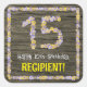 Adesivo Quadrado 15 Aniversário: Número Floral, Faux Wood Look, Nom