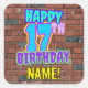 Este divertido design de adesivo quadrado com tema de aniversário mostra a mensagem "FELIZ 17º ANIVERSÁRIO," tendo uma vibrante, colorida arte urbana de rua e grafite inspirada, além de um nome de destinatário personalizado. O plano de fundo apresenta um padrão inspirado na parede do tijolo. Cartazes divertidos e personalizados como este podem ser dados como presente de aniversário, ou usados enquanto embrulham presentes, ou talvez usados como decorações de festas de aniversário quando se celebra o 17º aniversário de alguém. [~Z0000535]
