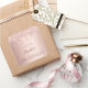 Um adesivo para uma giro e glamourosa 18ª festa de aniversário. Um fundo metálico rosa dourado falso com um brilho elegante de rosa dourado, pintura gota-a-gota. O texto: O nome é escrito em ouro rosa escuro com um grande estilo escrito à mão moderno. Modelo para nome, idade 18 e data.