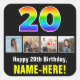 Adesivo Quadrado 20 Aniversário: Arco-Íris "20"; Fotografias e Nome