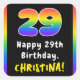 Este design de adesivo quadrado divertido e vibrante, com tema de aniversário, apresenta um grande número "29" com um espectro colorido de gradação inspirado no arco-íris, juntamente com a mensagem "Feliz 29º aniversário", e um nome de destinatário personalizado. Vinhetas como estas podem ser dadas ou utilizadas numa festa de comemoração do 29º aniversário de alguém, ou talvez utilizadas na preparação de convites ou presentes/presentes para tal evento. [~Z0000630]