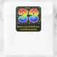 Este design de adesivo de aniversário divertido, colorido e vibrante apresenta um grande número "33" com um padrão inspirado no gradiente do espectro arco-íris, juntamente com a mensagem "Feliz 33º Aniversário", e um nome personalizado. Parte do fundo tem notas de música coloridas e padrão de símbolos. Os adesivos de aniversário divertidos e personalizados como este podem ser usados como decoração de festas de aniversário, ou talvez dados como presente de aniversário, ou talvez usados para embrulhar presentes de aniversário para celebrar o aniversário de um cantor, um músico, um compositor de música ou o 33º aniversário de alguém. [~Z0000423]