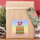 Este design de etiqueta de aniversário alegre e divertida apresenta uma representação em estilo cartoon de um bolo de aniversário de três níveis com velas em forma de número no topo, mostrando a idade de "37", juntamente com a mensagem "FELIZ 37º ANIVERSÁRIO", e um nome de destinatário editável. O fundo apresenta um espectro multicolorido de arco-íris pastel inspirado em gradiente. Os adesivos como estes podem ser distribuídos ou utilizados numa festa organizada para alguém que comemora o seu trigésimo sétimo aniversário, ou talvez utilizados para embrulhar presentes ou preparar convites para tal evento. [~Z0000624]