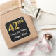 Este elegante, sofisticado e luxuoso design de adesivo de quadrado de aniversário apresenta um grande número ordinal "42º" com uma aparência falsa/imitada inspirada em ouro, além da mensagem de saudação de aniversário "Feliz 42º Aniversário" e um nome editável em uma fonte estilo script. O fundo é preto colorido. Os autocolantes temáticos de na moda de aniversário como este podem ser usados ao embrulhar um presente ou presente para alguém que comemora o seu quarenta e segundo aniversário, ou talvez possam ser entregues aos convidados numa celebração ou festa de aniversário. [~Z0000517]