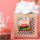 Adesivo quadrado com uma imagem de um sinal retrorreflector de 50 com um obrigado que você sente, um relógio de diner vermelho e uma imagem de um servidor fêmea 50 vintage em um quadro de xadrez preto e branco. Consulte os convites correspondentes do adesivo "save-the-date" (salvar a data), cartão, "50 Retro Diner Diner" (Diner Retro Diner) e "50 Retro Diner Vazio Sign" (Sinal do Retro Diner), envelope, bolsa de favor, caixa de favor, etiqueta de favor e rótulo. Veja a coleção inteira do Nifty 50 Sticker nos CONVITES | Seção Stickers & Labels