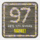 Adesivo Quadrado 97.º Aniversário: Número Floral, Faux Wood Look, N
