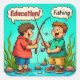 Mergulhe no mundo lúdico da infância com esta ilustração vibrante que mostra dois meninos se unindo ao seu amor compartilhado pela pesca. Enquanto se acredita na importância da educação, a outra encontra alegria na emoção da pesca. Esta cena encantadora captura a essência da curiosidade infantil, da amizade e do equilíbrio entre aprendizagem e lazer. Lembra-nos que a educação pode ser uma viagem divertida e envolvente, muito como um dia passado pescando com um amigo.