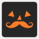 Rosto de abóbora de Halloween preto e laranja com bigode.