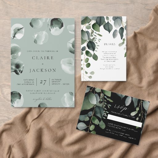 Coleção de casamento com verde e eucalipto. Conjunto completo disponível https://www.zazzle.com/collections/greenery-119810626079950849