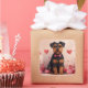 com o cão sentado graciosamente entre as rosas vermelhas cor-de-rosa e rodeado de corações pastéis. Com seus tons claros, modernos, estéticos e cor-de-rosa macio, esse design é perfeito para espalhar calor e afeto sobre o Dia de os namorados.