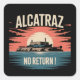 Um poster retrô que retrata a famosa ilha prisional de Alcatraz no pôr do sol. Um gráfico perfeito para fãs da história, do crime e da atmosfera dos tempos passados.