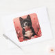 Adesivo Quadrado American Akita com Rosas - Dia de os namorados