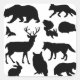 Animais da Floresta, Vida Selvagem, Conjunto de florestas, animais florestais na silhueta negra.