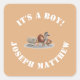 O design de Bichinhos Enchidos Enchidos apresenta um fundo brando para a frase personalizável, "É um Rapaz!" em letras brancas. Também em letras brancas está o nome do bebê. O centro da design apresenta uma imagem de animais fofinhos bonitos, todos amontoados juntos, prontos para receber o bebê! Todo texto é personalizável.