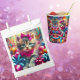 Adesivo Quadrado Aniversário da Gatinha Rosa e Azul