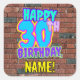Este divertido design de adesivo quadrado com tema de aniversário apresenta a mensagem "ANIVERSÁRIO DE 30 ANOS FELIZ", tendo uma aparência vibrante, colorida e inspirada no grafite, além de um nome de destinatário personalizado. O plano de fundo apresenta um padrão inspirado na parede do tijolo. Tímulos divertidos, vibrantes e personalizados como este podem ser dados como presente de aniversário, ou usados enquanto embrulham presentes, ou talvez usados como decoração de festas de aniversário ao comemorar o trigésimo aniversário de alguém. [~Z0000535]