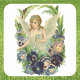 Adesivo Quadrado Anjo Páscoa vitoriano com Flores Pansy Roxas