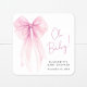 Os adesivos bonitos para os convites para chás, favoritos para festas e cartas de agradecimento para as meninas, com uma elegante aquarela de um arco cor-de-rosa, "Oh Baby" em um guião chic rosa, e o nome da futura mãe e da data do chá em letras simples e modernas.