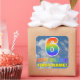 Este design de adesivo com o tema de aniversário empolgante, divertido e atraente apresenta um céu azul com um fundo de nuvens, um grande número "6" e "FELIZ BIRTHDAY", ambos tendo um espectro multicolorido de arco-íris inspirado em gradiente e um nome personalizado. Tímulos divertidos e coloridos como este podem ser usados ao embrulhar presentes que estão sendo dados a alguém que está celebrando seu aniversário de 6. [~Z0000374]