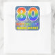 Este design de adesivo com tema de aniversário, divertido e vibrante apresenta um céu azul com padrão de nuvens, um grande número "80" e "FELIZ BIRTHDAY", ambos tendo um espectro multicolorido de arco-íris inspirado em gradiente, e um nome personalizável. Tímulos divertidos e coloridos como este podem ser usados ao embrulhar presentes que são dados em comemoração do oitavo aniversário de alguém. [~Z0000374]